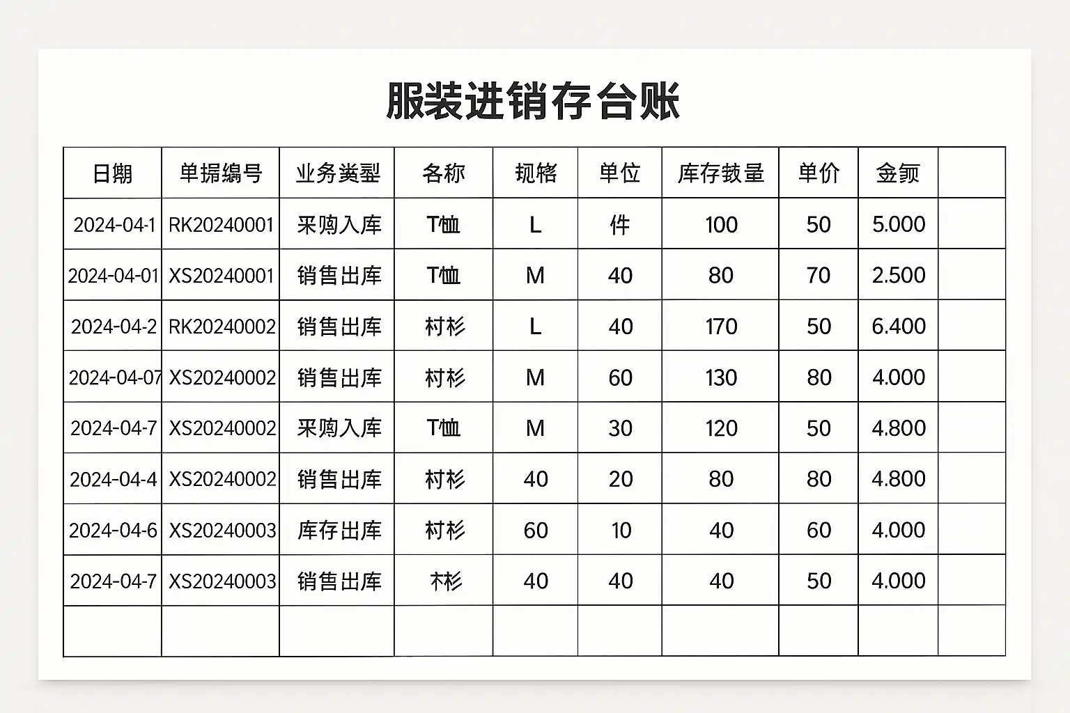 服装怎么做进销存台账