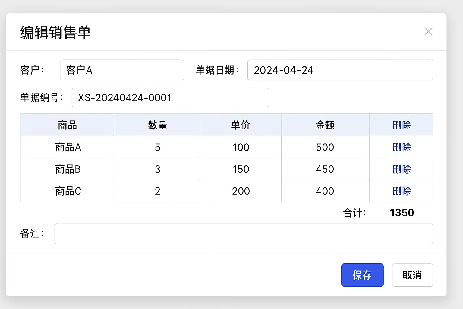 - 根据需求调整商品数量、价格或客户信息。
