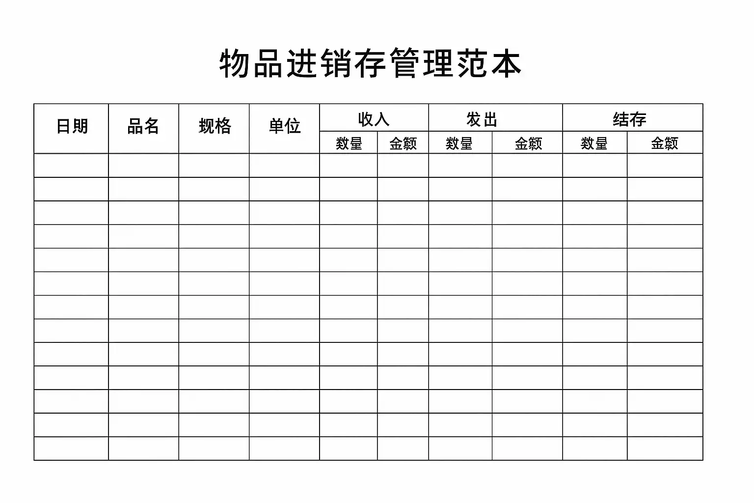 物品进销存管理范本的基本结构通常包括以下几个部分: