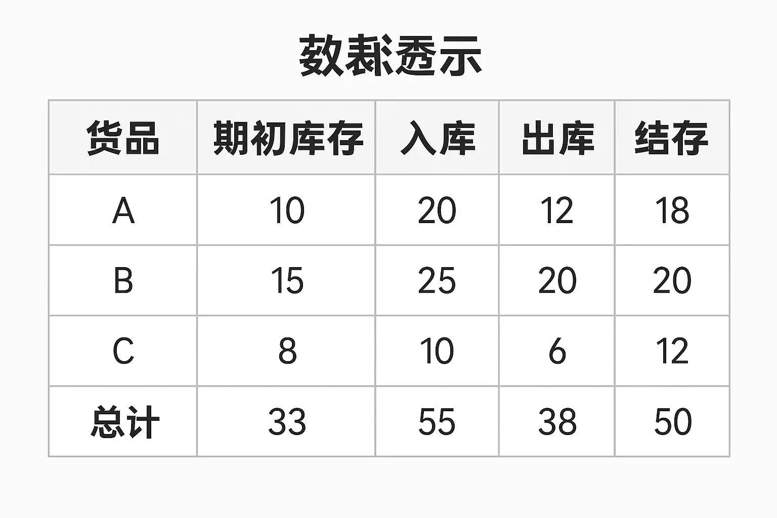 | 字段名 | 类型 | 作用说明 ||------------|----------|------------------------|| 商品编码 | 字符串 | 唯一标识商品 || 商品名称 | 字符串 | 便于识别与分类 || 类别 | 字符串 | 分类统计,如按类别汇总 || 日期 | 日期型 | 时间序列分析 || 数量 | 数值型 | 销售/采购/库存数量 || 单价 | 数值型 | 计算金额基础 |