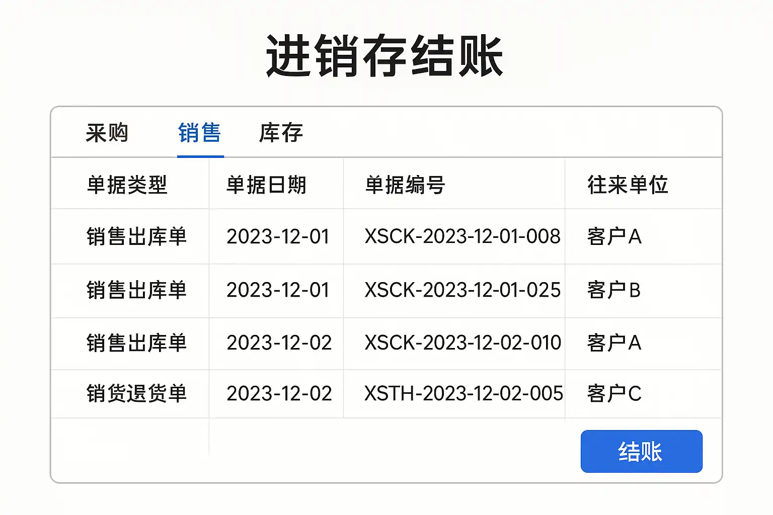 我刚开始使用财务软件管理库存和销售,但不太清楚进销存系统的结账流程具体包括哪些步骤,能详细解释一下吗?