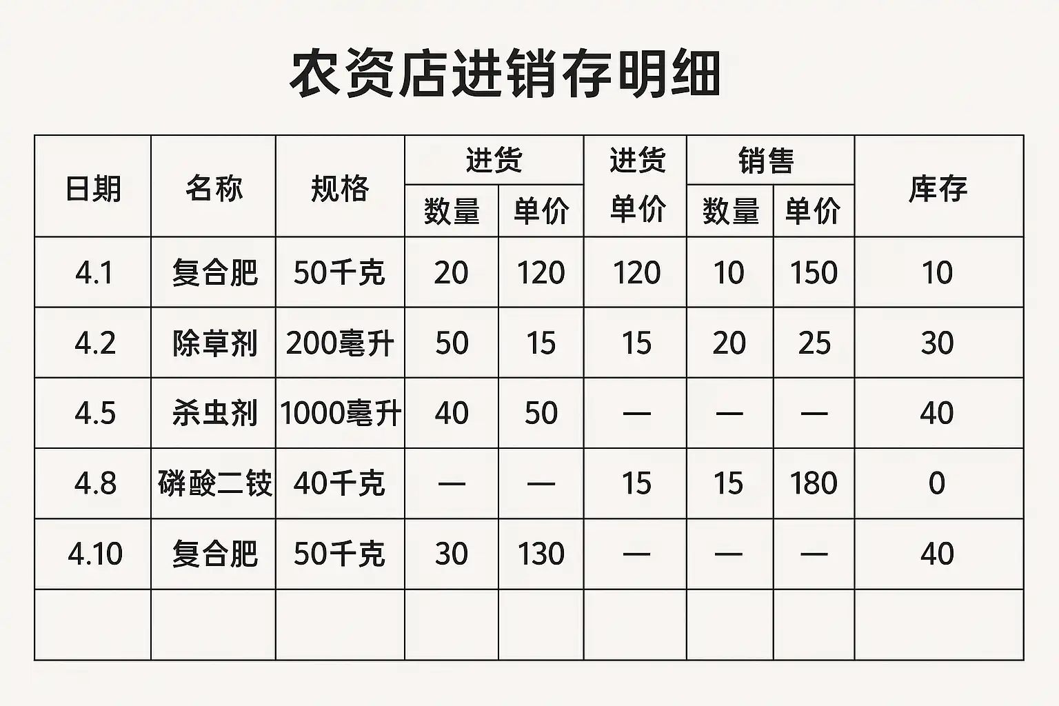 农资店进销存明细怎么写才规范?