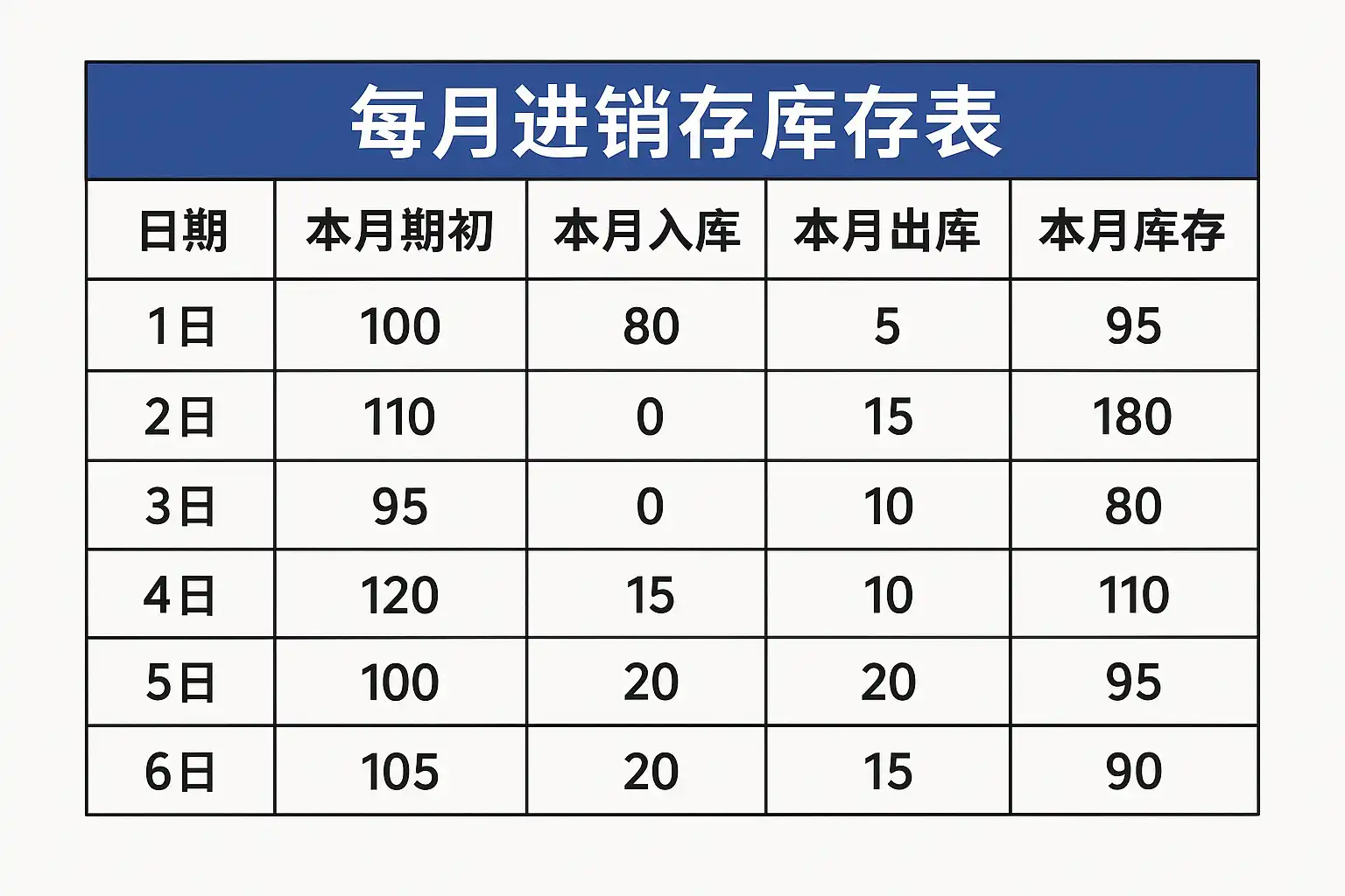 | 6 | 本期出库数量 | 本周期销售或领用出库的数量 |