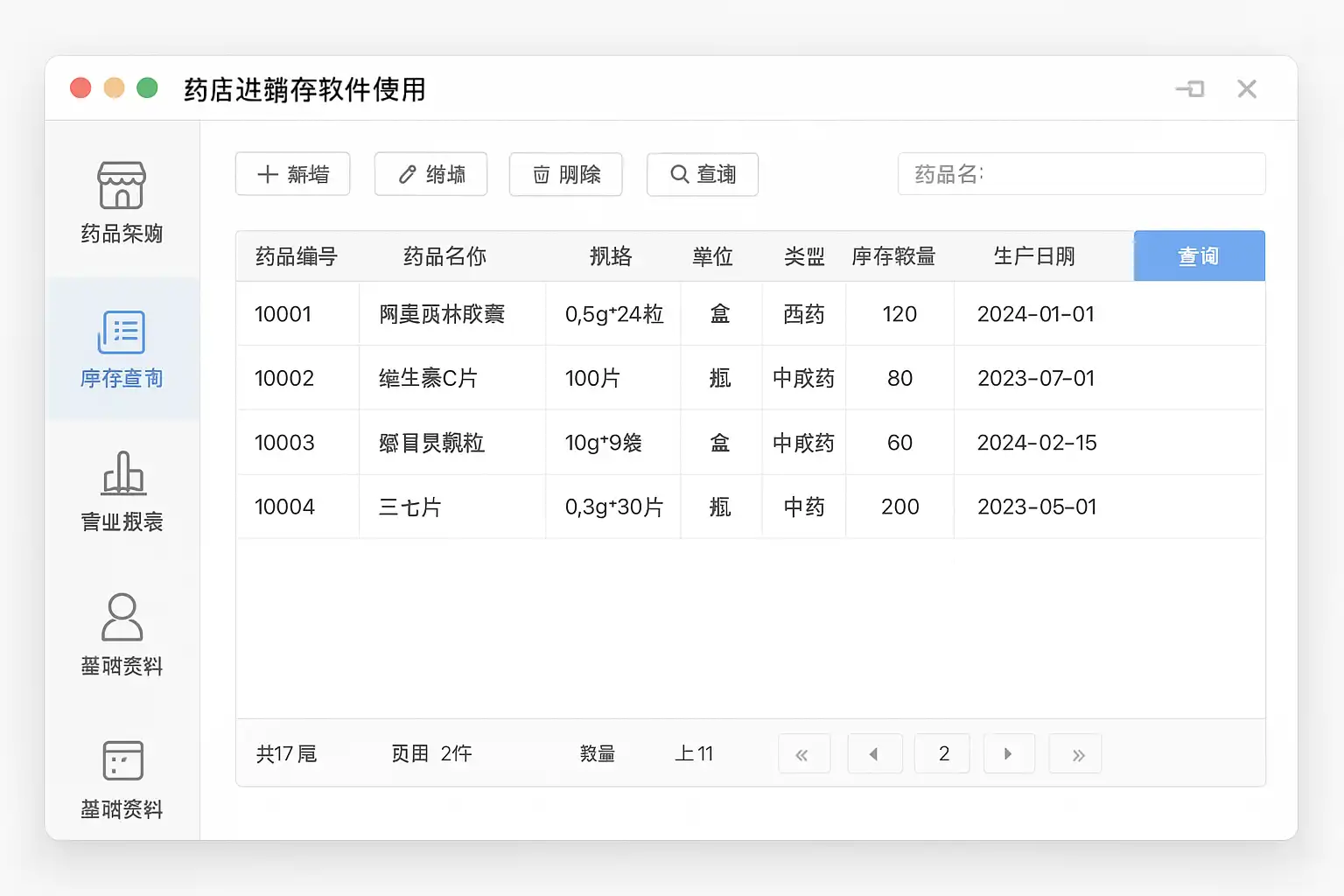 - 商品录入:通过条形码扫描或手动输入药品名称、规格、批次号等信息,确保数据准确。