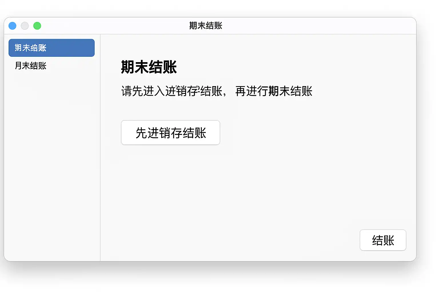 期末结账是指在每个会计期间结束时,对企业本期所有的采购、销售和库存变动进行系统梳理,并将相关数据正确地转入下一个会计周期,为决策和合规提供基础依据。整个流程分为以下几个主要步骤: