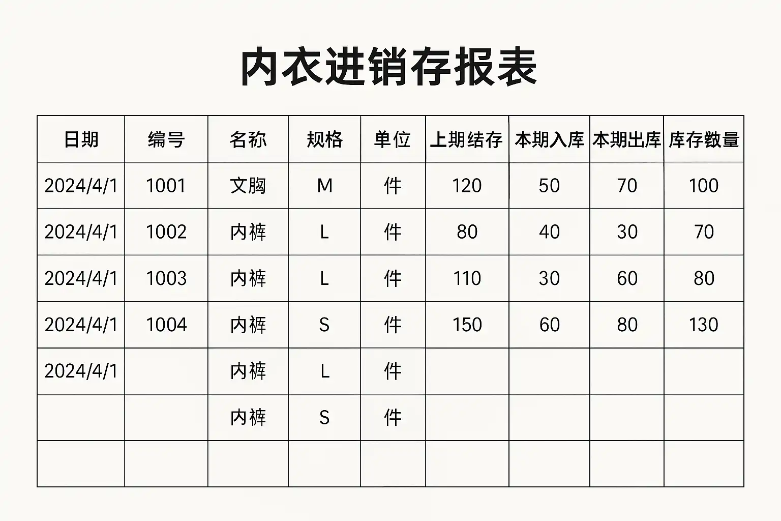 内衣进销存报表怎么做