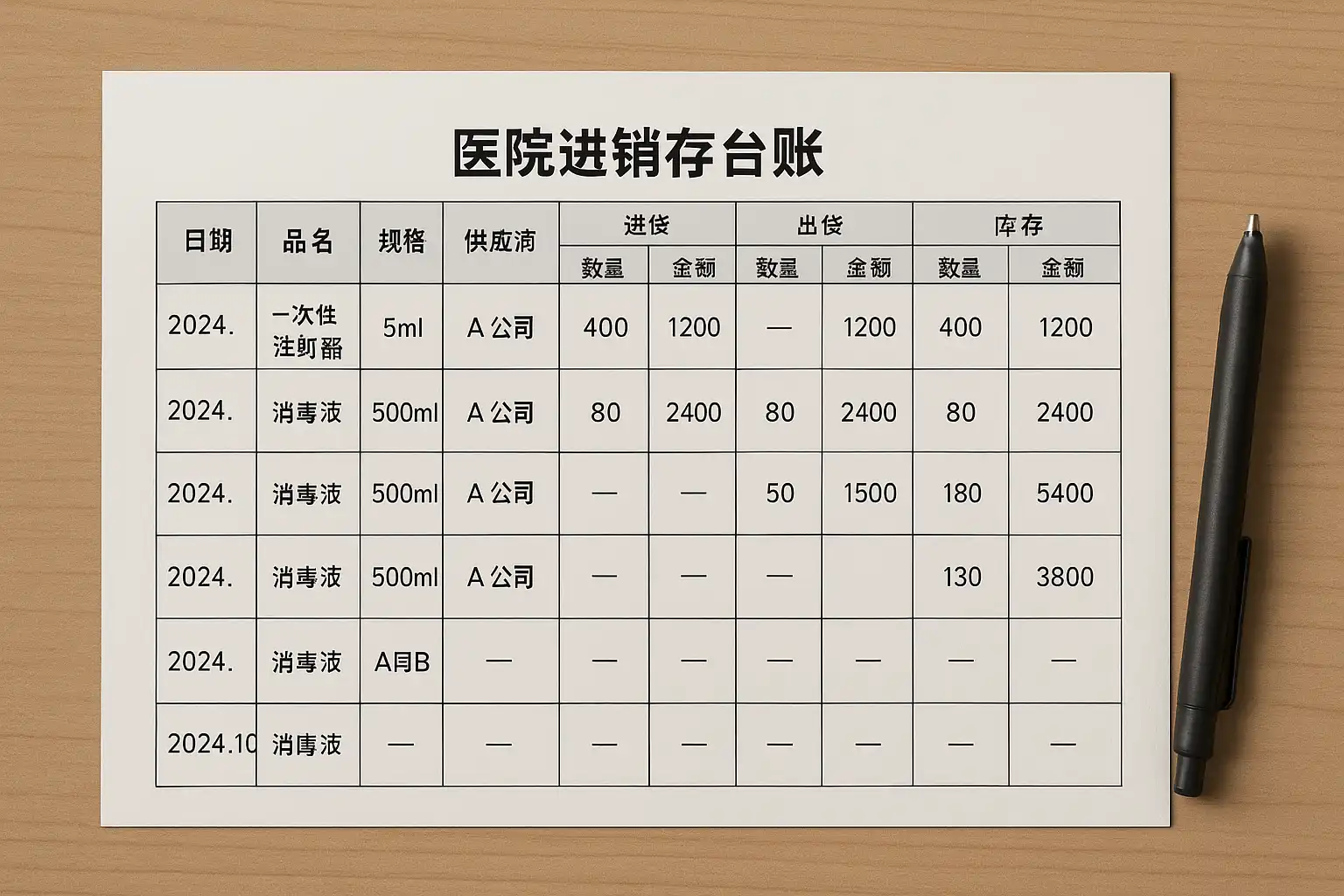 医院进销存台账是用于记录医疗物资采购、入库、出库及库存情况的基础工具。标准做法包括: