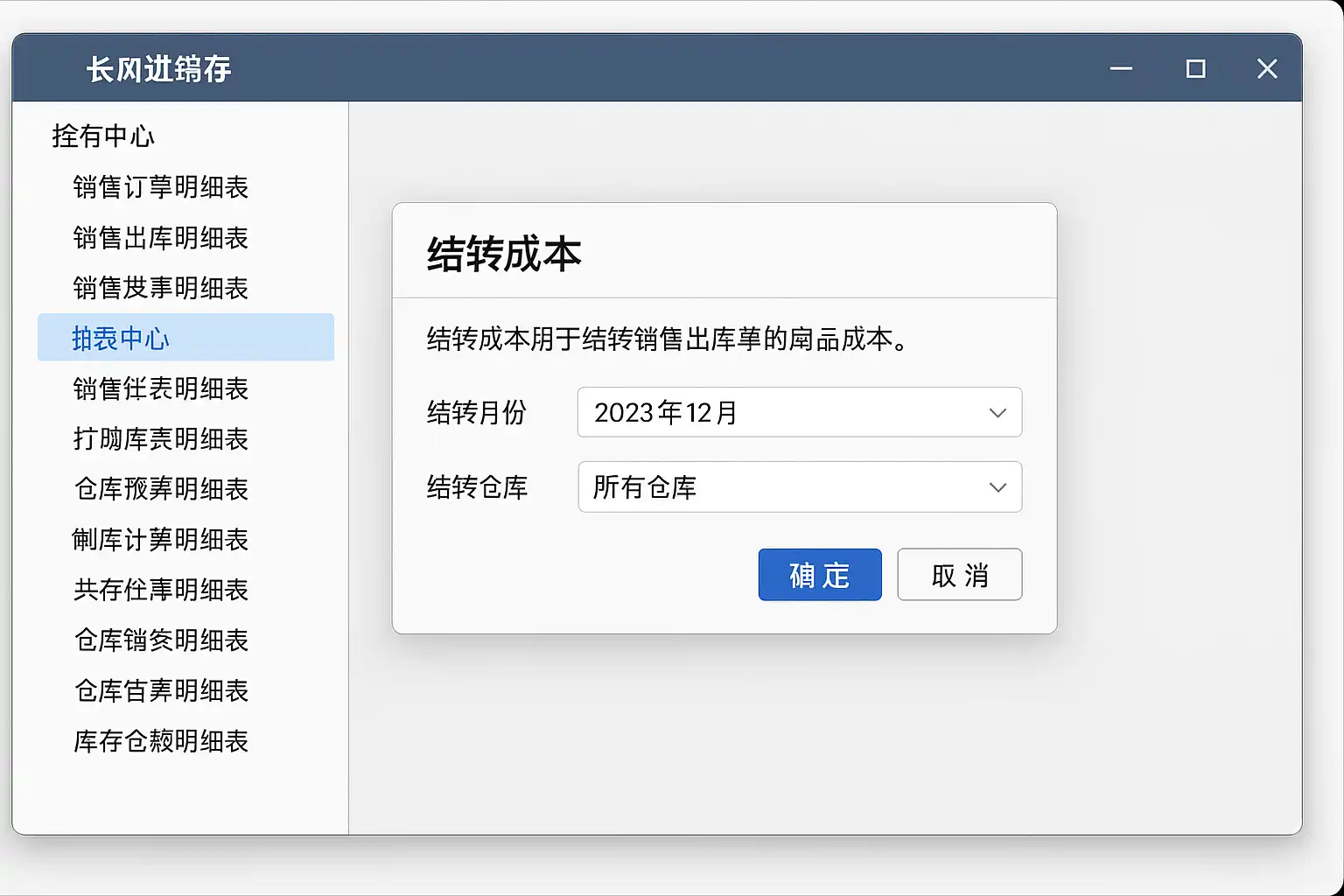 在长风进销存系统中,成本结转通常遵循以下标准步骤: