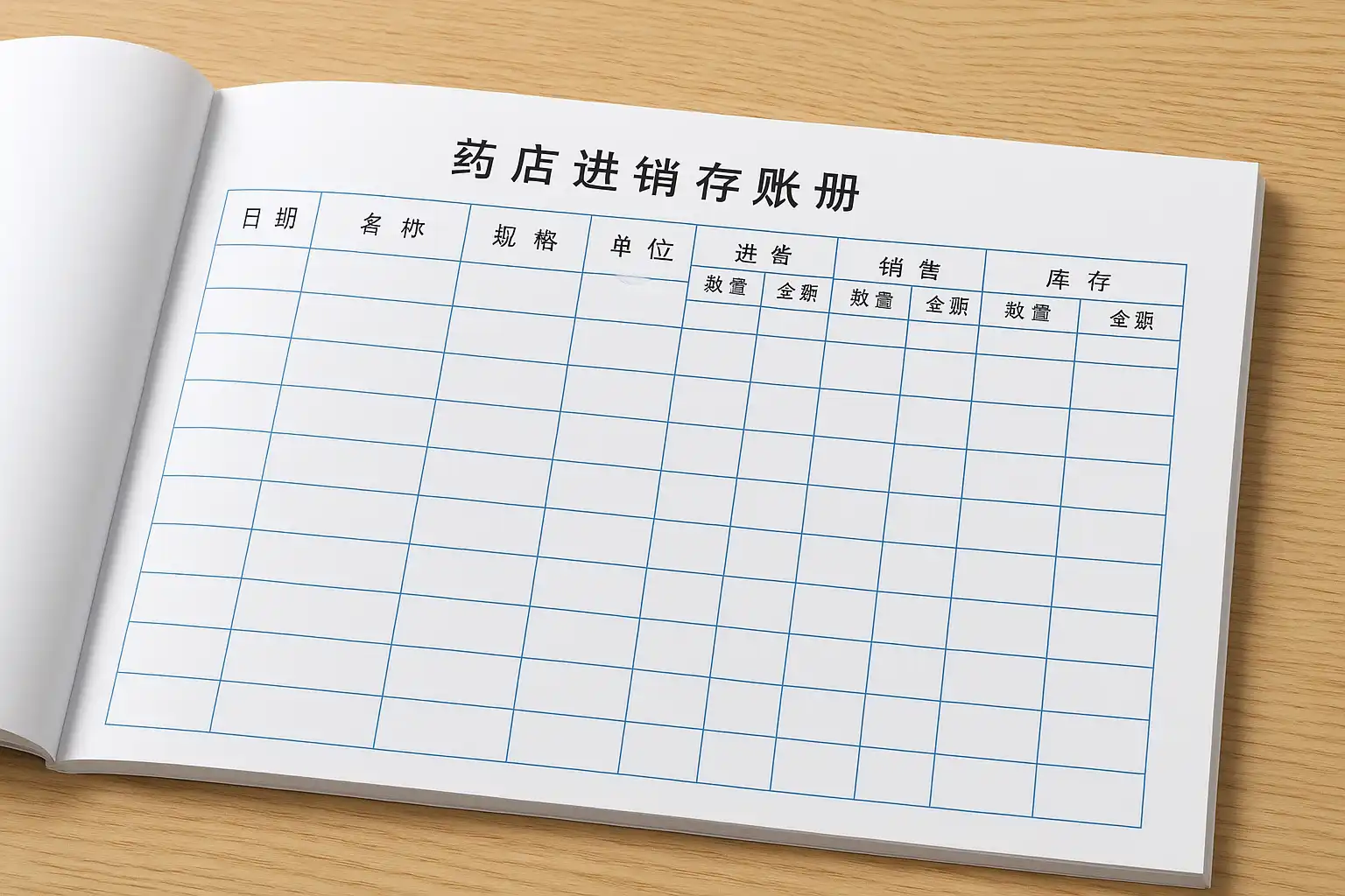 药店进销存账册的制作需遵循“进货、销售、库存”三大核心环节。具体步骤包括: