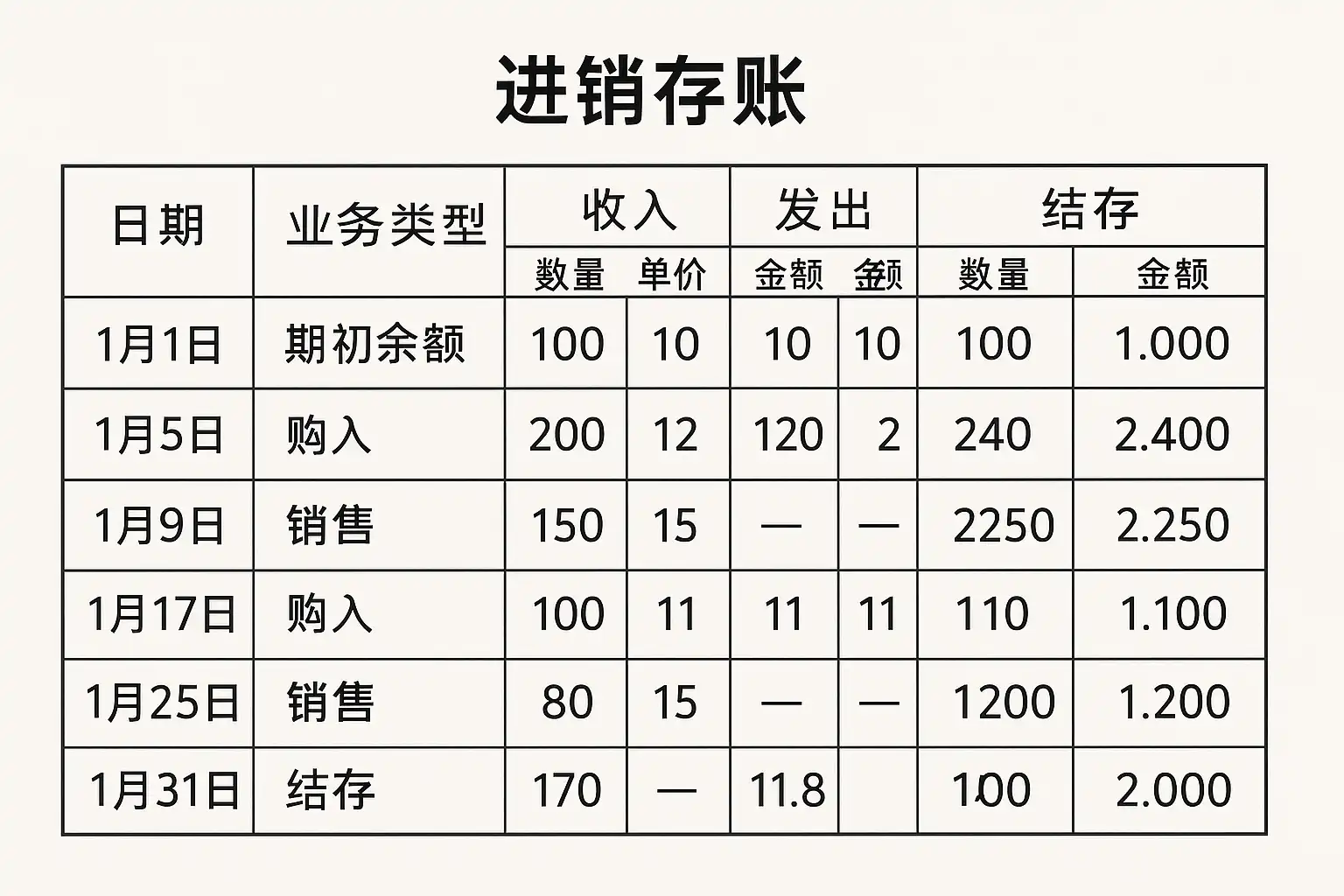 如何通过结构化布局提升进销存账表格的可读性?