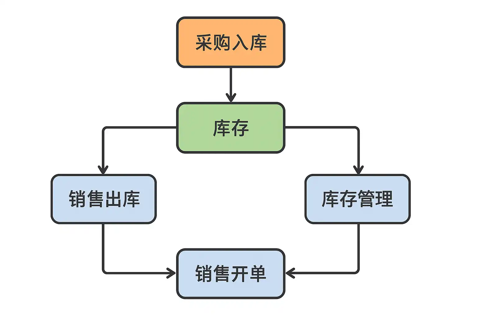 - 明确业务环节:采购—入库—销售—出库—盘点。