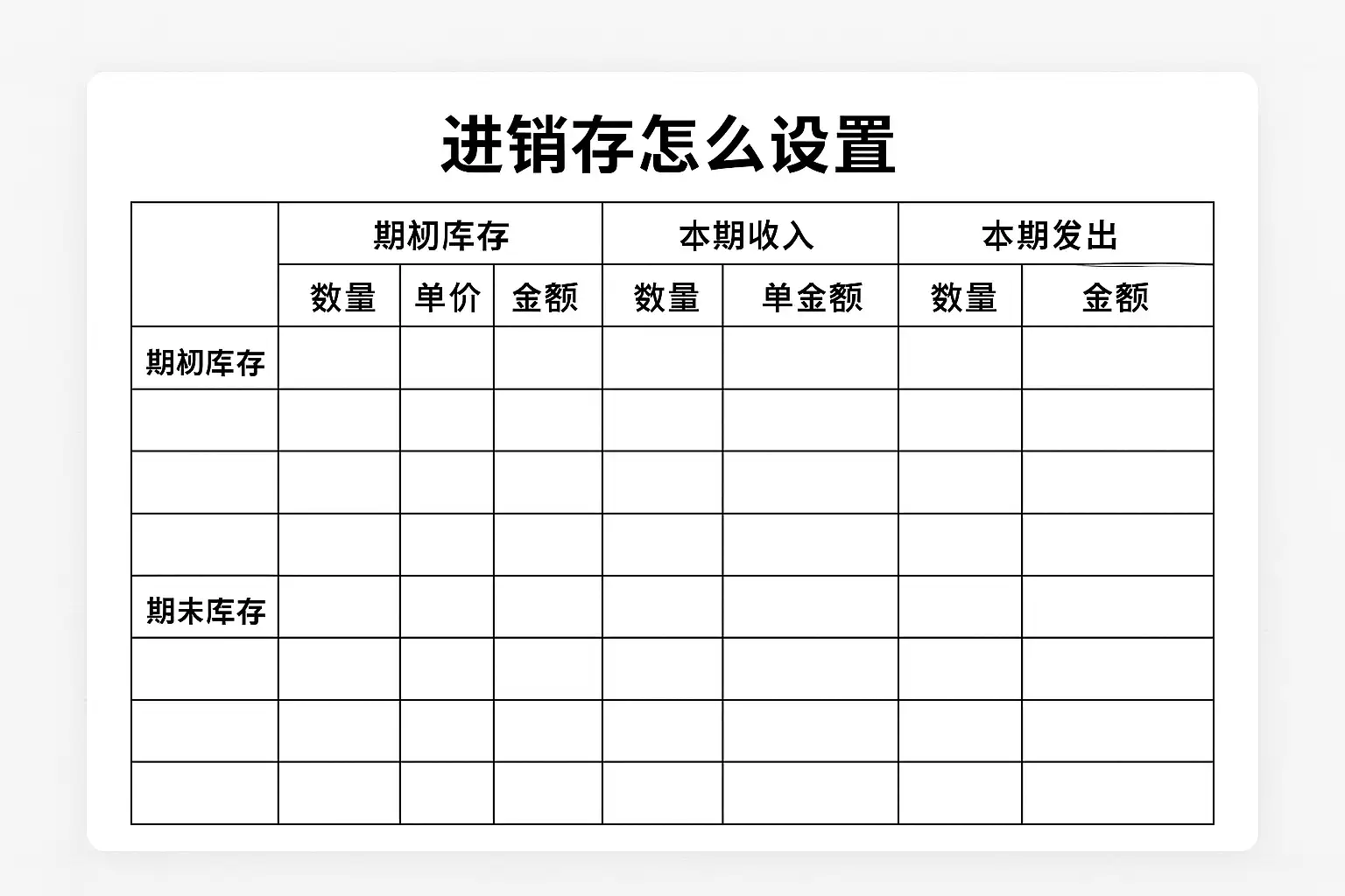 - “本期期末”=“本期期初”+“本期入库”-“本期出库”,由公式自动计算。
