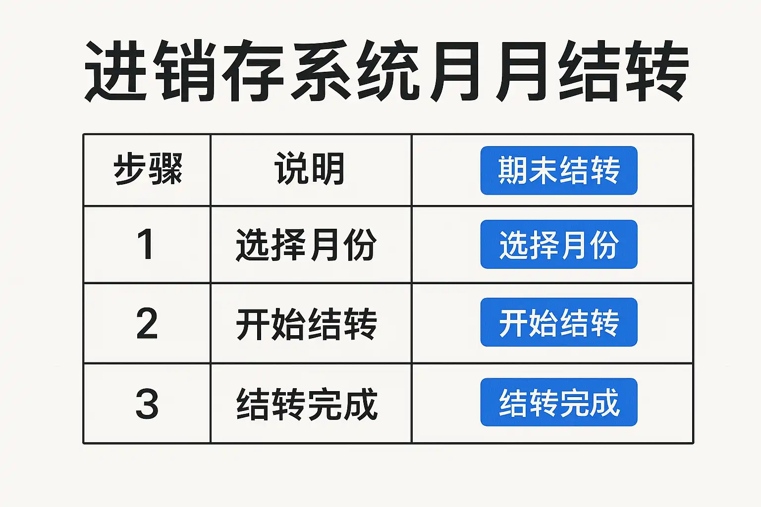 作为一名财务人员,我经常遇到月底结转操作不当导致数据混乱的问题。能不能详细讲解一下进销存系统月底结转的具体流程,帮我理清每一步该怎么做?