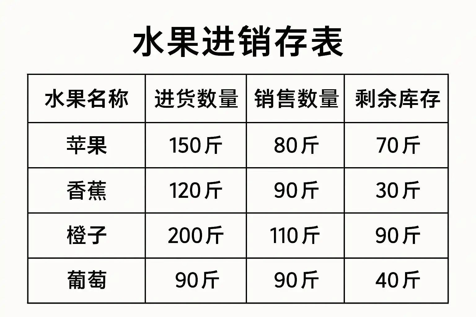 - 关键词自然融入:在表头使用“水果名称”、“采购数量”、“销售数量”、“当前库存”等关键词,提升检索和理解效率。