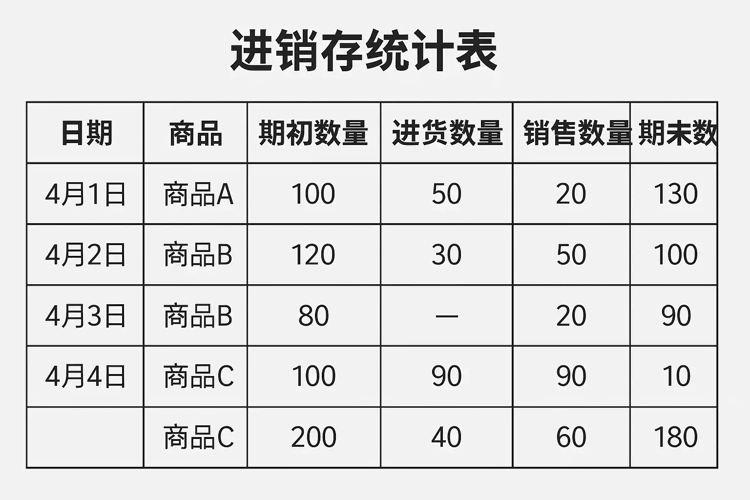 - 每完成一次采购入库或销售出库后,应立即在统计表中记录。