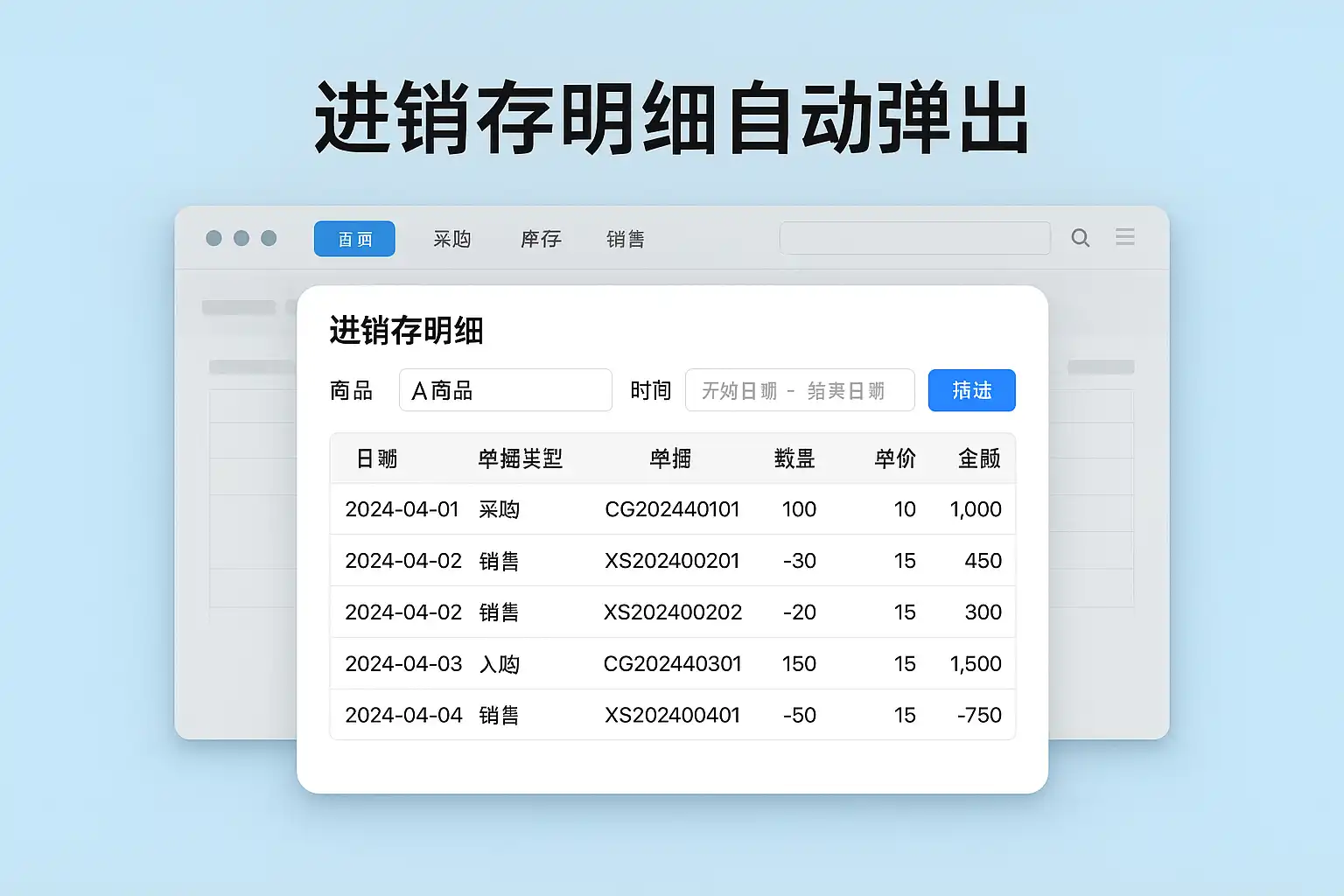 一、进销存明细自动弹出的核心方式