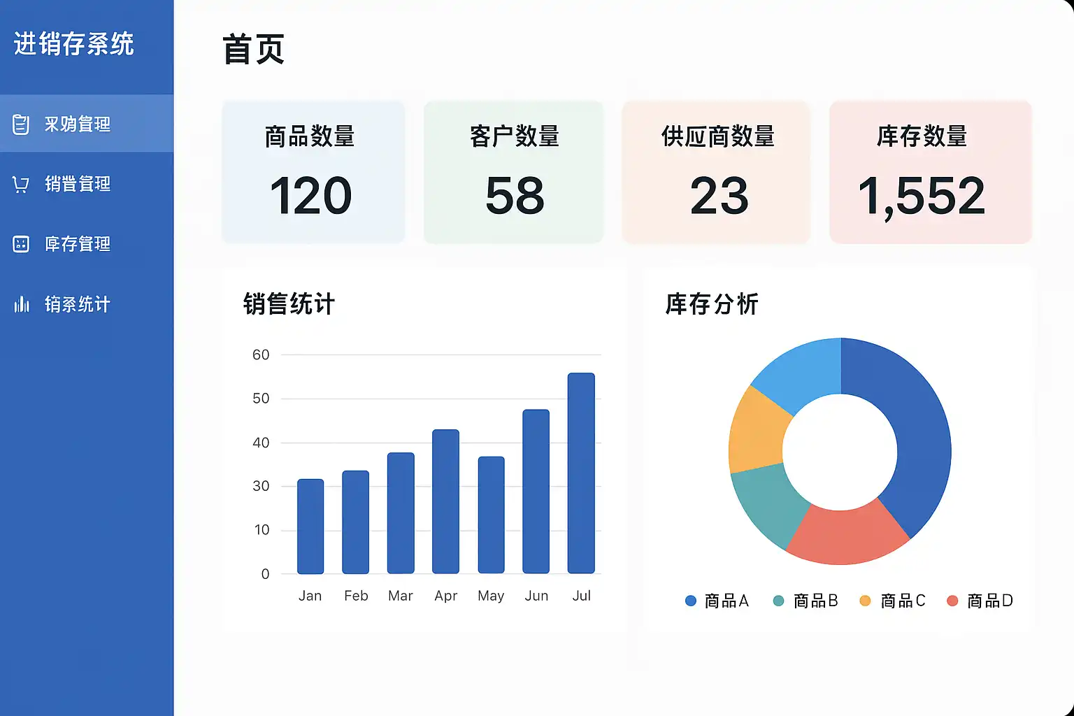 作为财务主管,我想让进销存系统首页展示更直观的数据,比如库存周转率和销售额变化趋势。但不太懂技术术语,也不知道怎么调整这些数据展示,有没有简单实用的方法推荐?