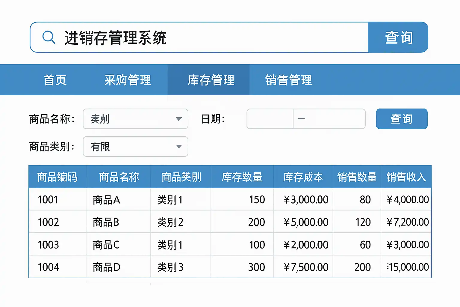 在进销存管理系统中查询库存信息,通常可以通过“库存管理”模块完成。具体步骤包括: