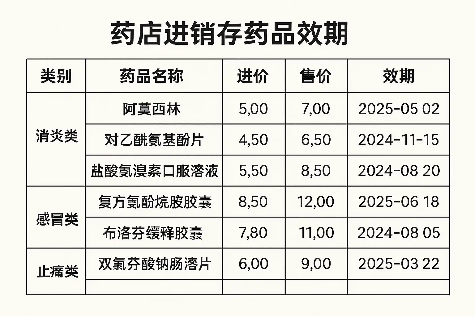 药店进销存药品效期怎么写