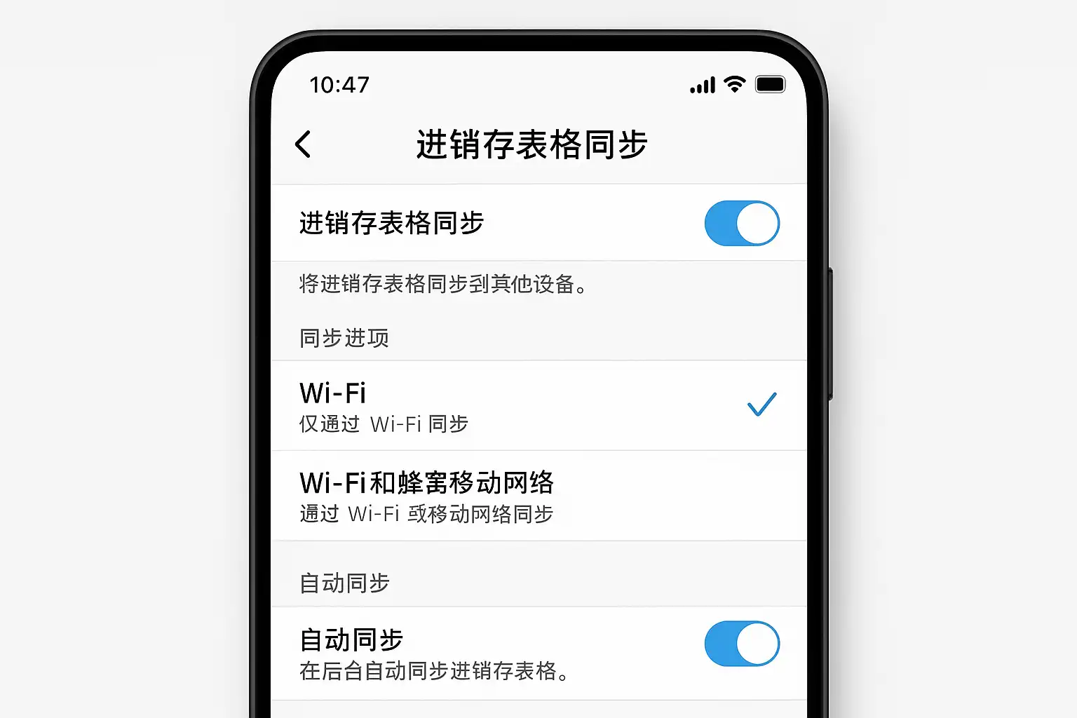 我刚开始使用手机进销存系统,但不太清楚表格的同步功能应该怎么设置,能否详细说明一下具体步骤和注意事项?