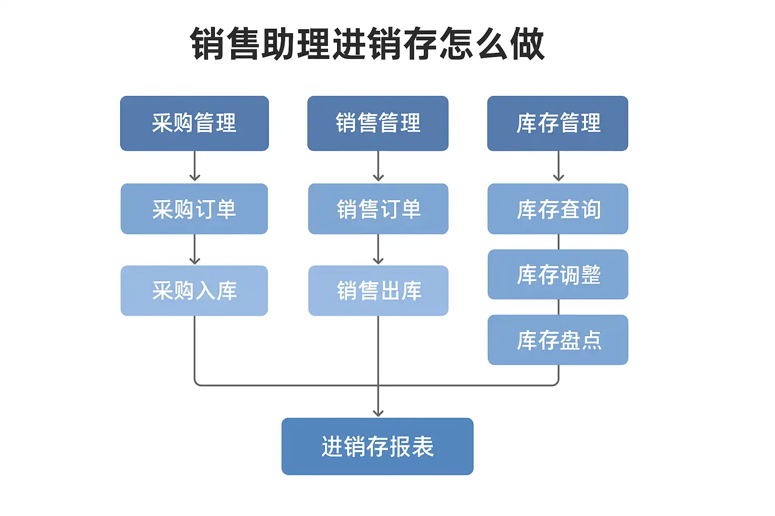 销售助理日常的进销存管理核心可分为:采购入库、销售出库、库存盘点与报表统计,每个环节都需要严格按照流程执行。