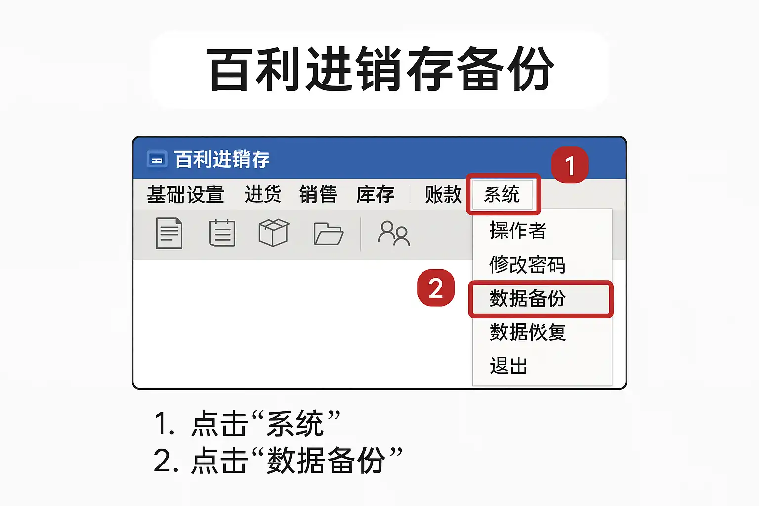 我在使用百利进销存管理系统时,担心数据丢失。想知道具体应该怎么操作备份才能确保数据安全?