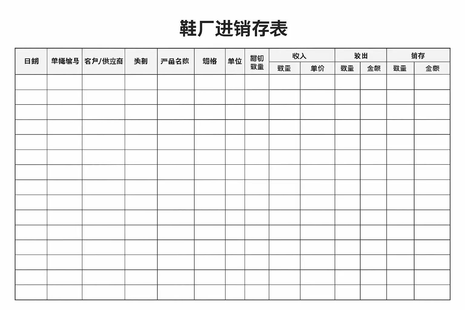 一、鞋厂进销存表格模板核心要素