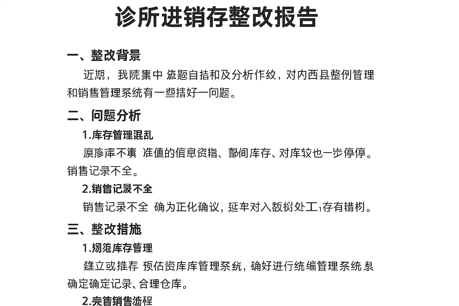 诊所进销存整改报告怎么写