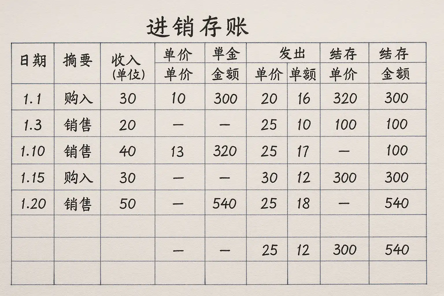 一、进销存手工账的基本概念与核心要求