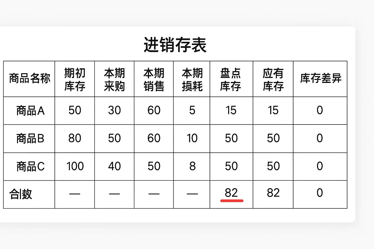 盘点表的作用 盘点表是企业定期或不定期清查实际库存后形成的数据记录工具。它反映了某一时刻仓库内各类商品的实有数量,是确保进销存数据准确的关键依据。