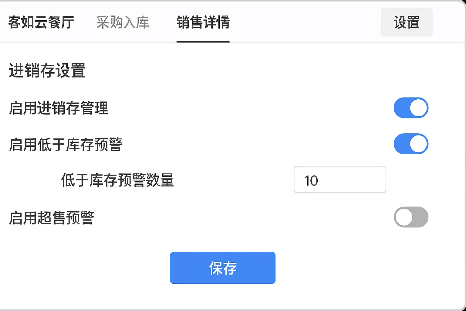 客如云餐厅进销存怎么设置?