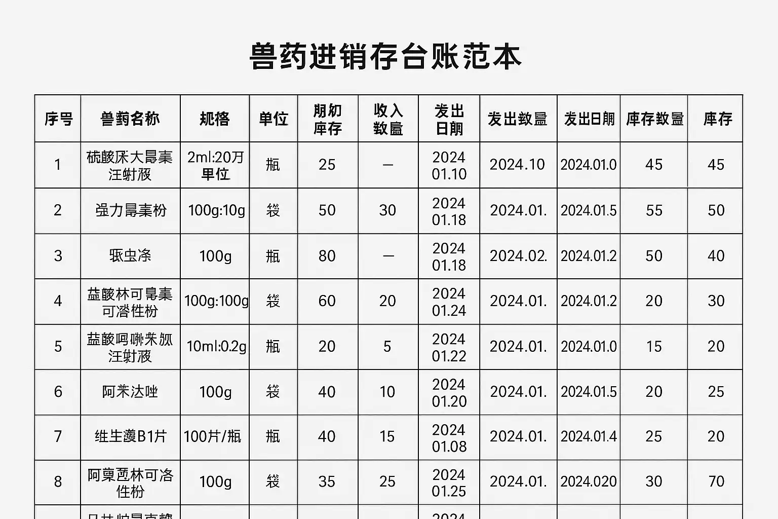 兽药作为特殊商品,其采购、销售和库存管理必须符合国家相关法规。规范编写进销存台账,不仅是企业合规经营的基础,也是应对监管抽查的重要保障。