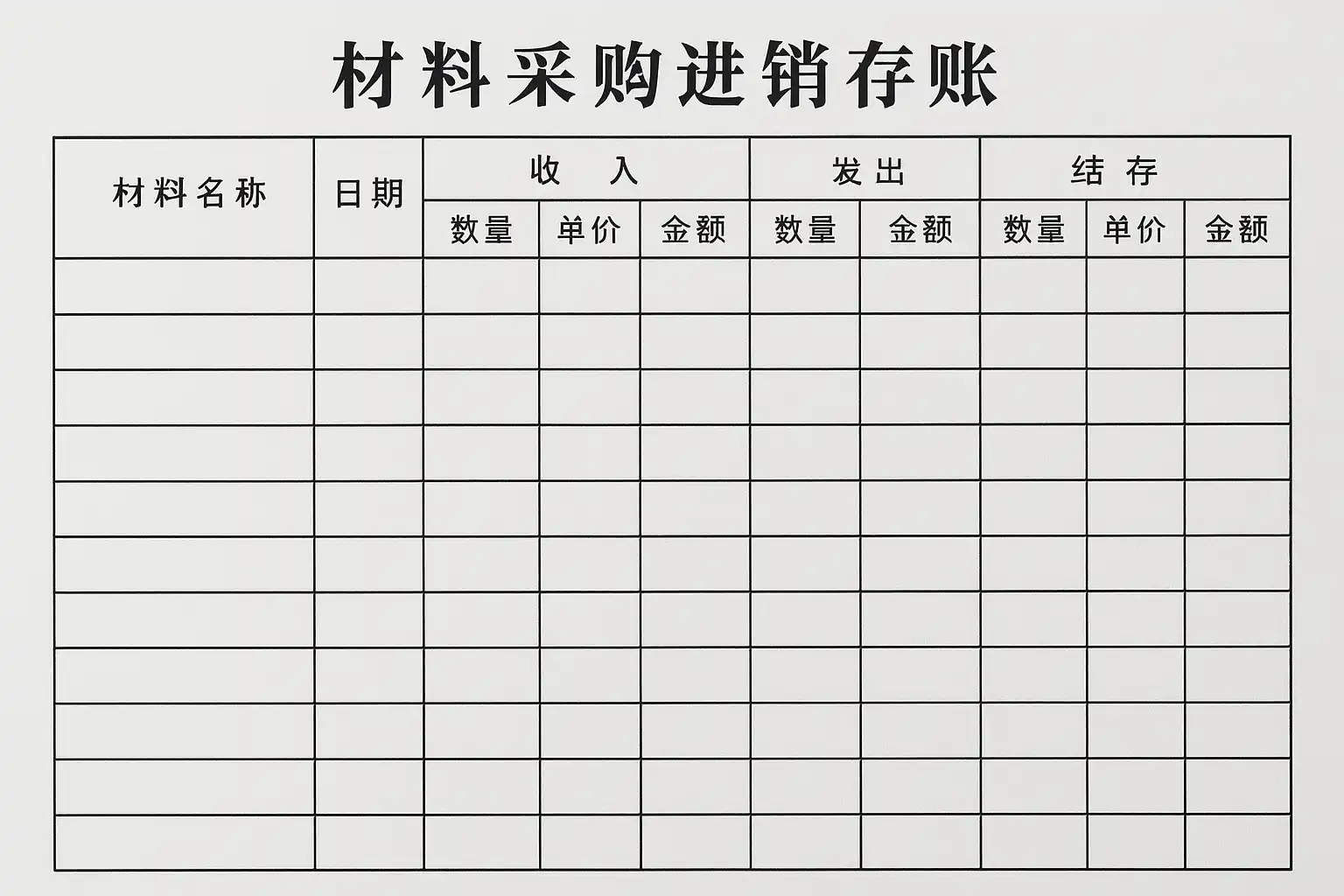 利用结构化表格能显著提升材料采购进销存账的可读性和管理效率。推荐字段包括: