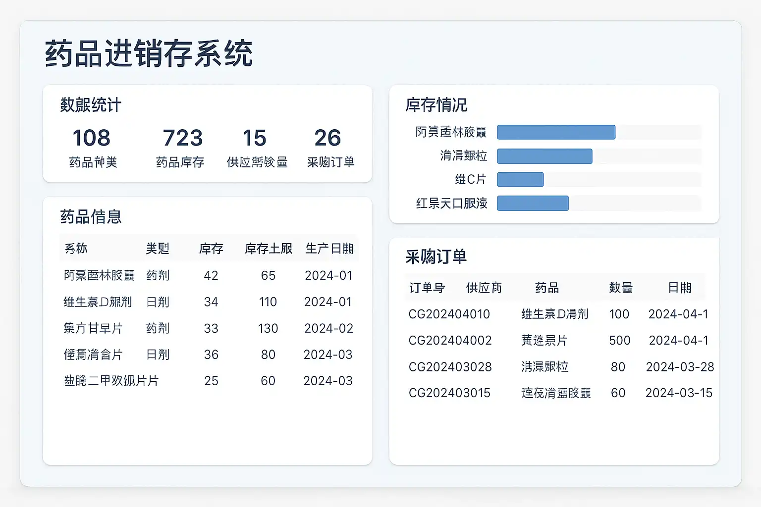 - 报表分析:提供采购、库存、销售等多维度数据报表,辅助决策。以某医药公司为例,通过模块化设计,其系统将库存周转率提升了15%,有效降低了资金占用。