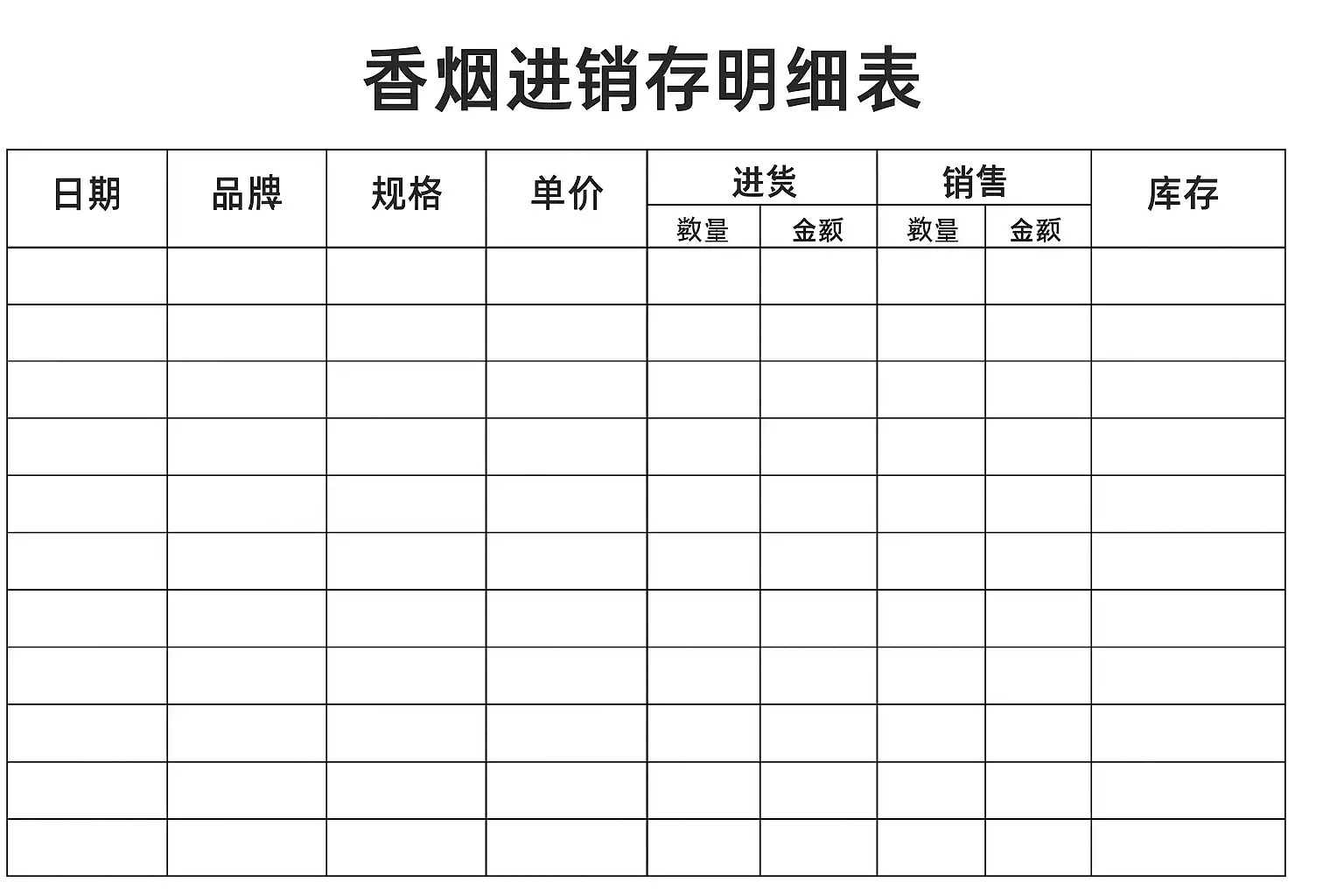 一份标准的香烟进销存明细表通常包括以下核心栏目: