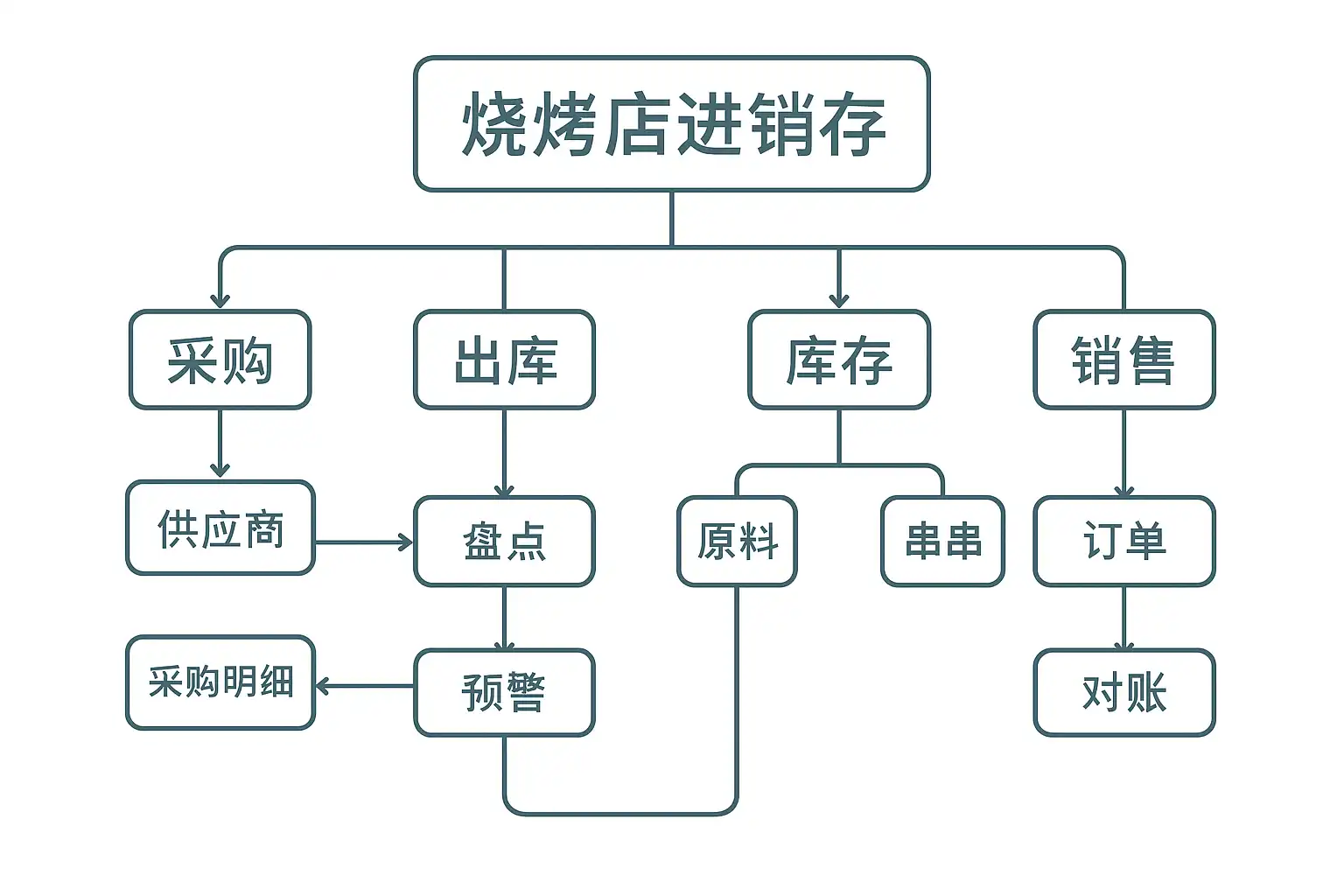 一个适合烧烤店的进销存系统应具备以下核心功能:
