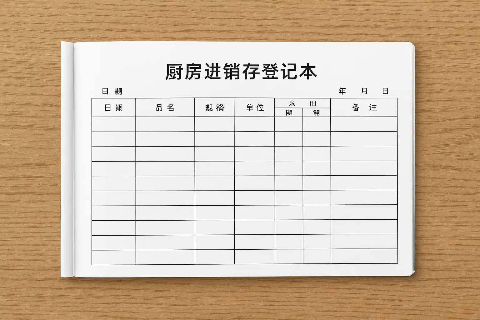 一个完整的厨房进销存登记本应包含以下核心内容,以保证信息全面且便于追踪: