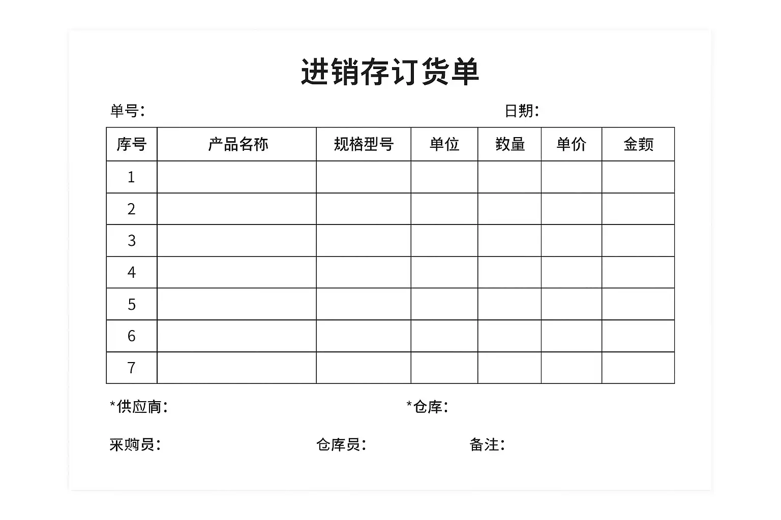 精确填写进销存中的订货单,有助于采购过程的顺畅和后续账务核对。一般来说,标准的订货单包含以下核心内容: