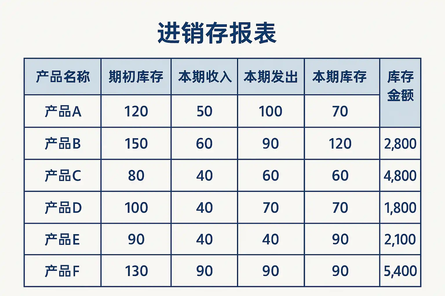 以下为常见的进销存报表示例结构: