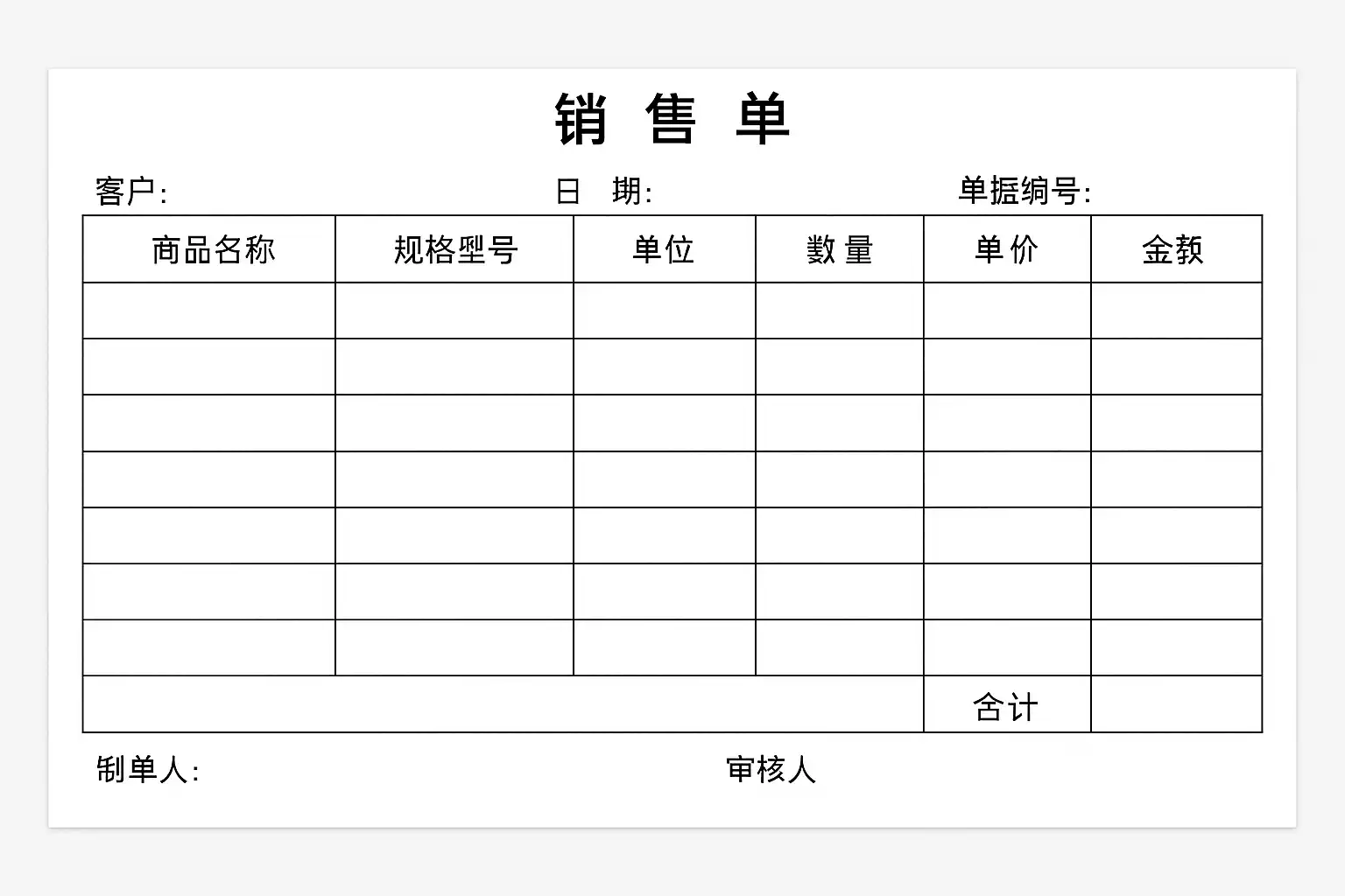 一个标准的销售单通常需要以下几个重要信息: