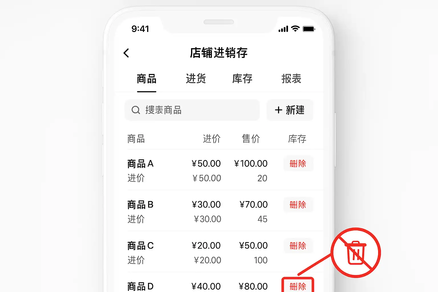 我在使用手机版店铺进销存管理软件时,想知道具体步骤该怎么操作才能删除不需要的商品。删除功能在哪儿?有没有什么注意事项?