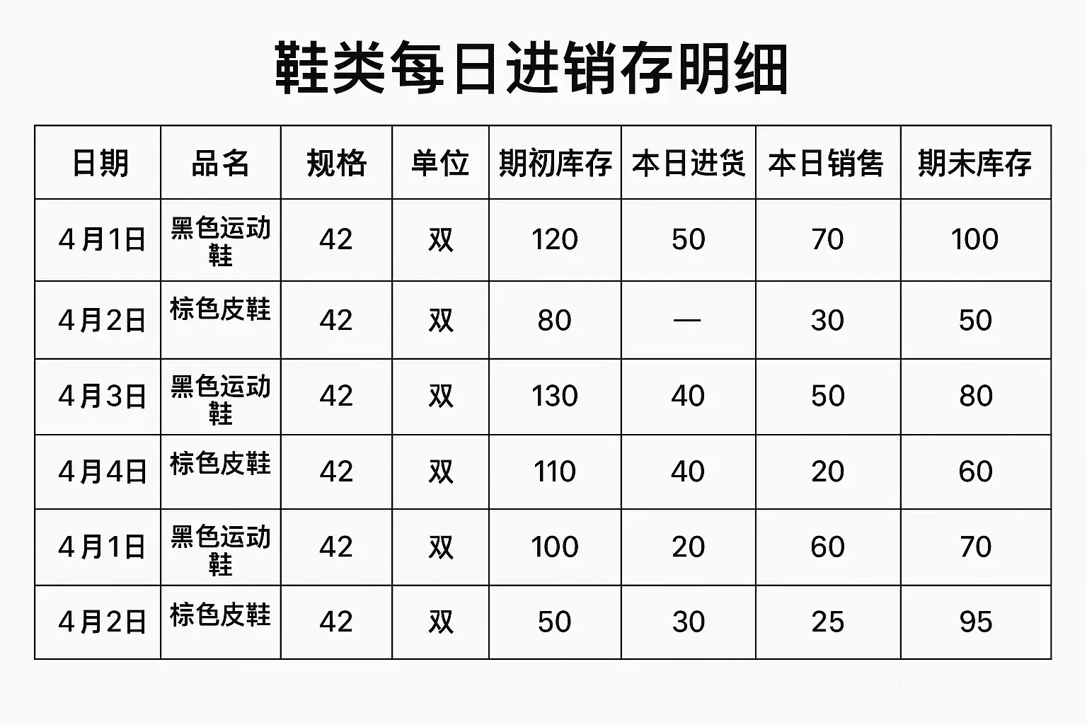 鞋类每日进销存明细怎么写