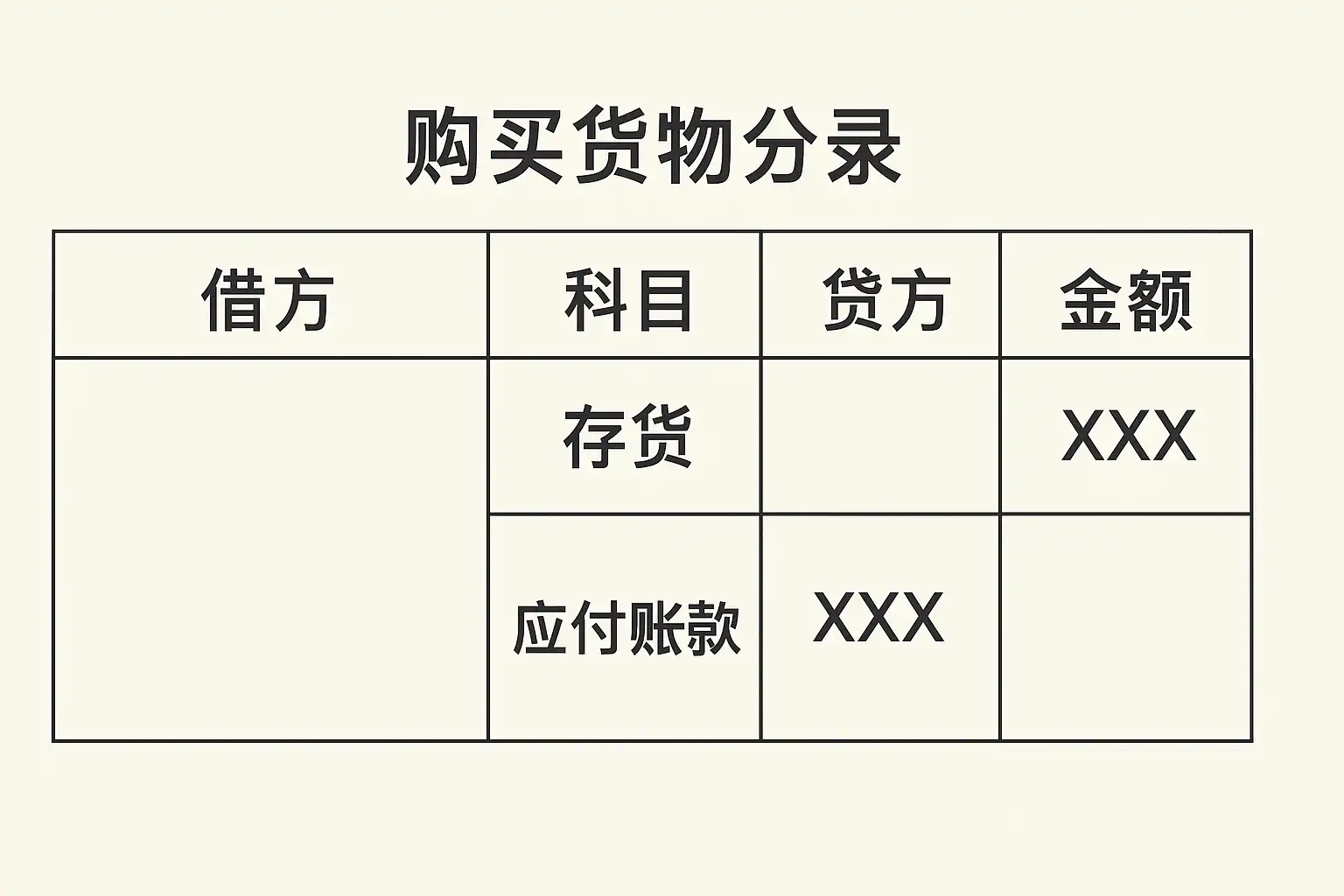 | 赊购 | 库存商品 | 应付账款 | ¥50,000 |