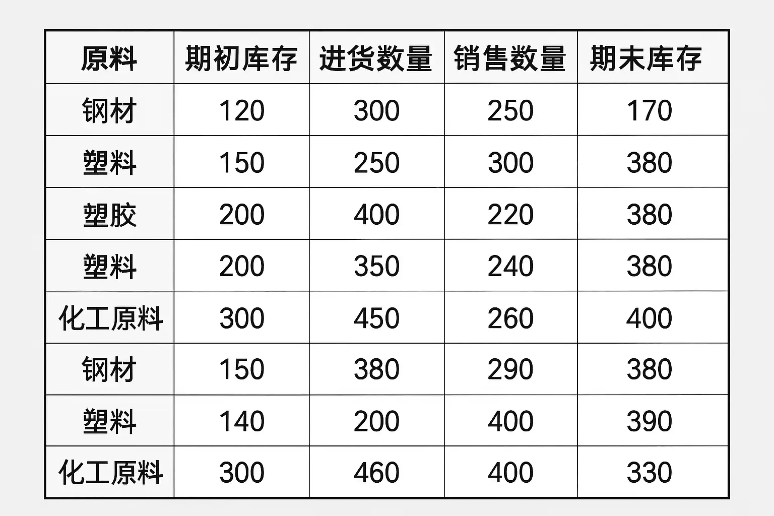 | 日期 | 原料名称 | 入库数量 | 出库数量 | 库存数量 |