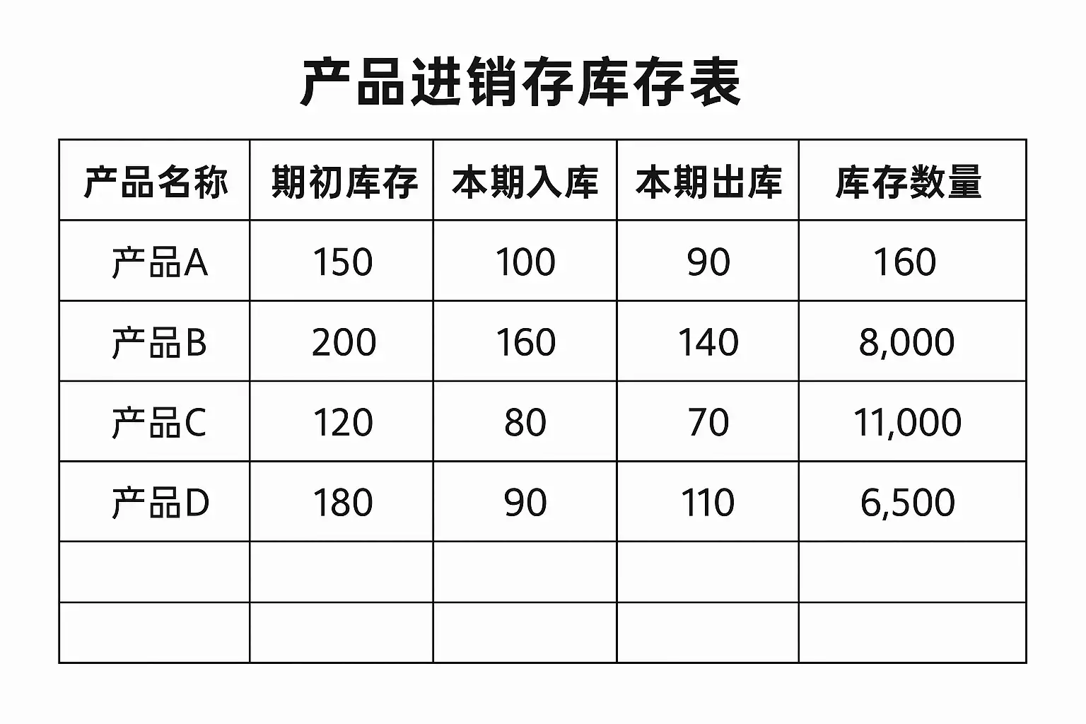 在制作产品进销存库存表之前,首先要理清其内容架构,确保能够完整反映出商品从采购到销售再到结余各个环节的数据。标准的进销存库存表通常包含如下核心字段:
