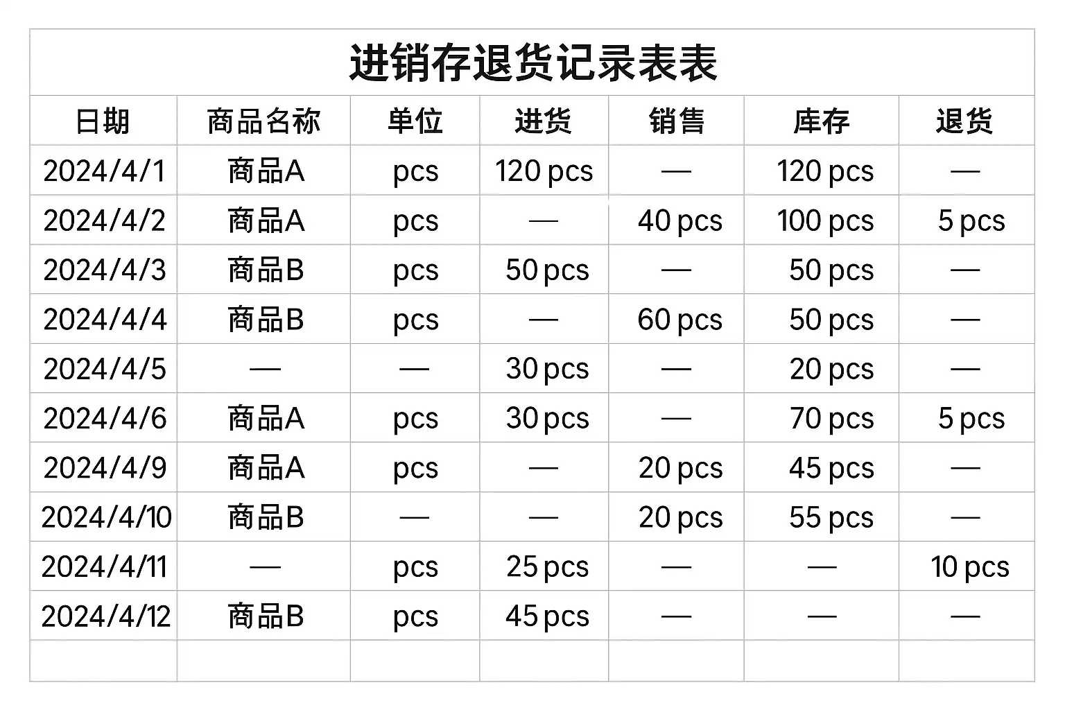 通过系统化维护退货记录表,可以实现以下几点库存优化: