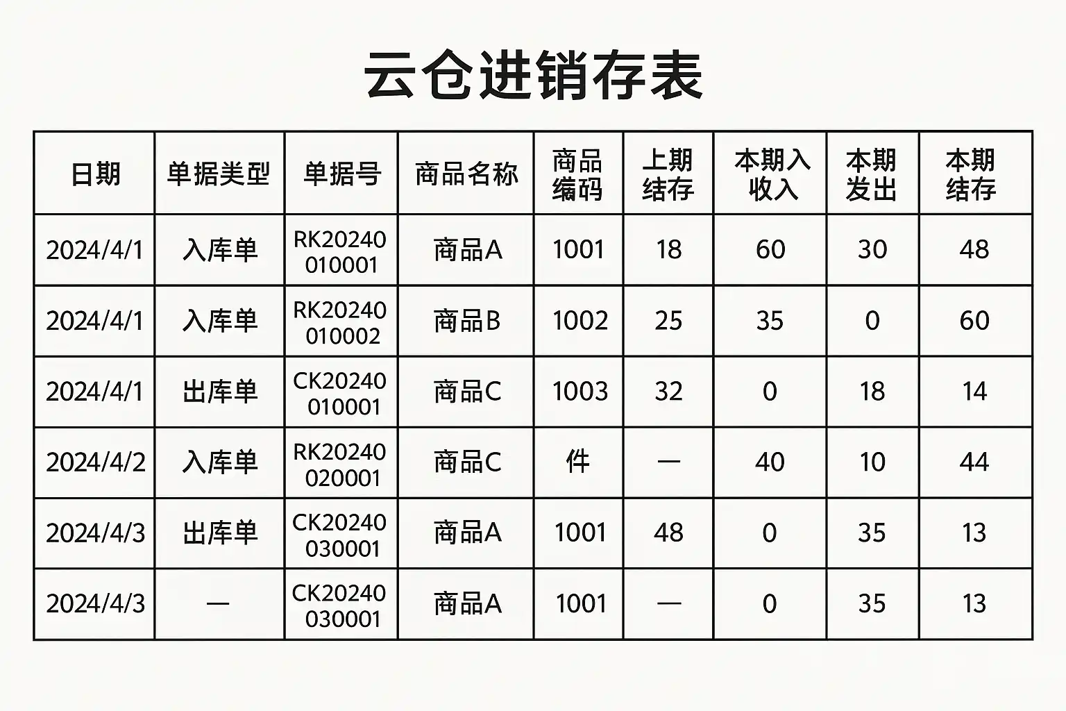 云仓进销存表怎么做