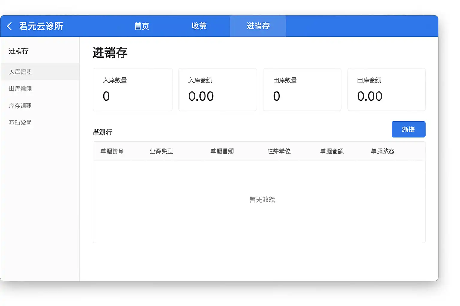 君元云诊所软件的进销存功能主要包含以下核心模块: