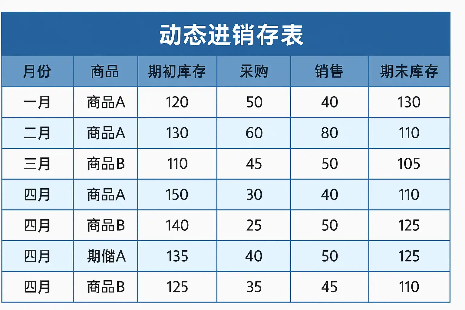 如何通过结构化布局提升动态进销存表的可读性?