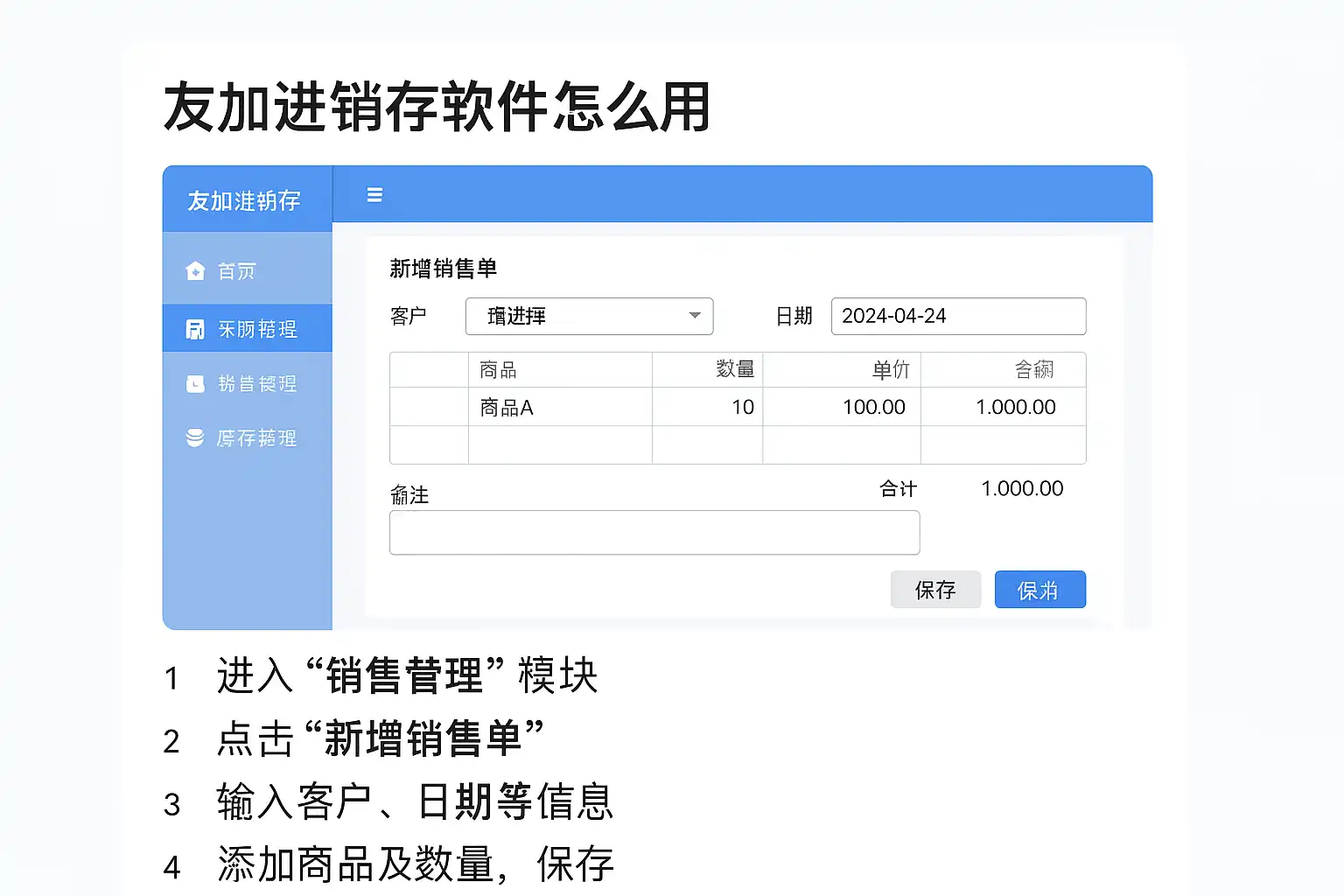 友加进销存软件主要通过三个核心模块实现库存管理:采购入库、销售出库和库存盘点。新用户可以按照以下步骤快速上手: